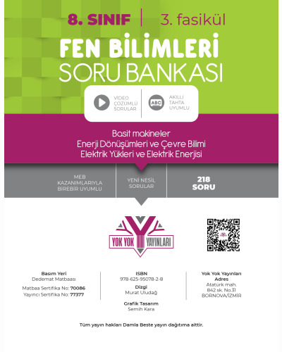 8.SINIF FEN BİLİMLERİ SORU BANKASI BASİT MAKİNELER, ENERJİ DÖNÜŞÜMLERİ, ELEKTRİK YÜKLERİ 3.FASİKÜL