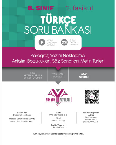 8.SINIF TÜRKÇE SORU BANKASI PARAGRAF, YAZIM NOKTALAMA, ANLATIM BOZUKLUKLARI, SÖZ SANATLARI 2.FASİKÜL